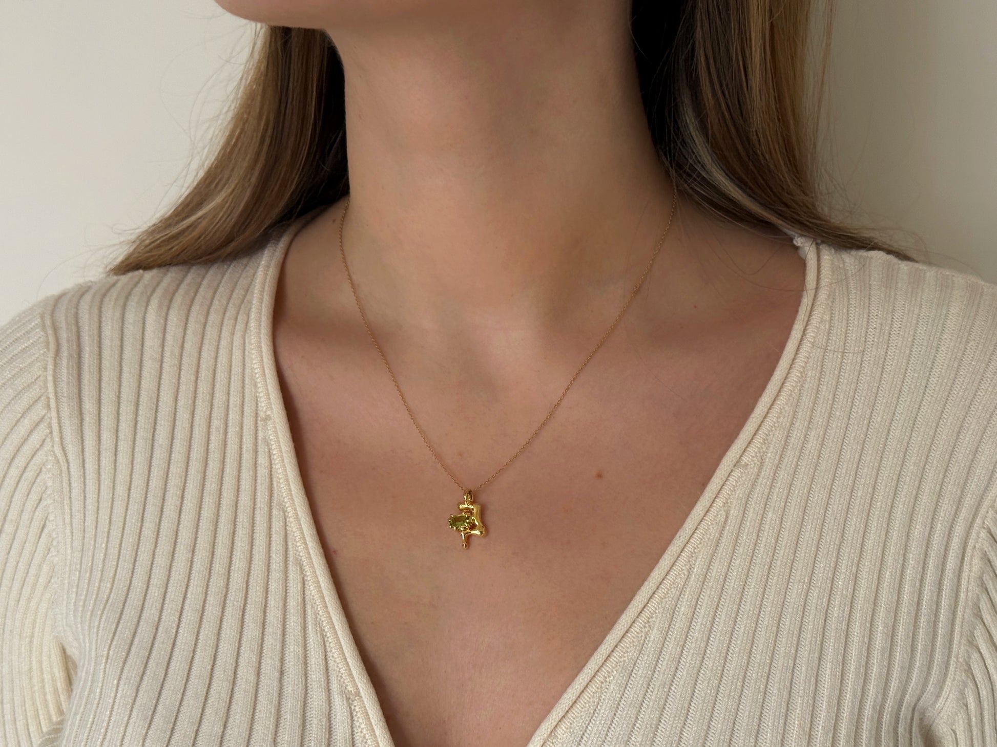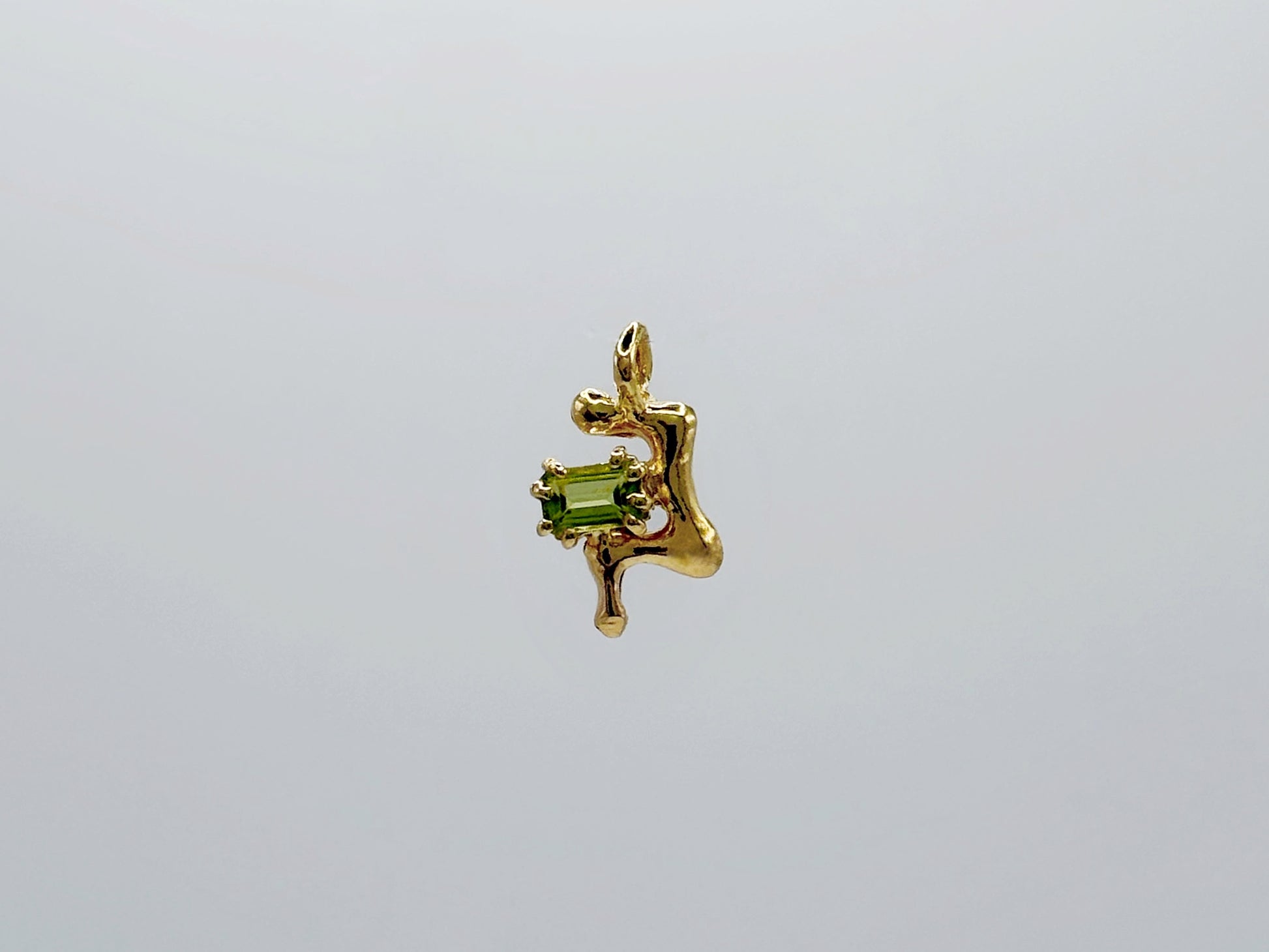Ciondolo in Argento 925 placcato oro realizzato a mano in Italia tramite la tecnica della fusione a cera persa, con peridoto taglio ottagonale.