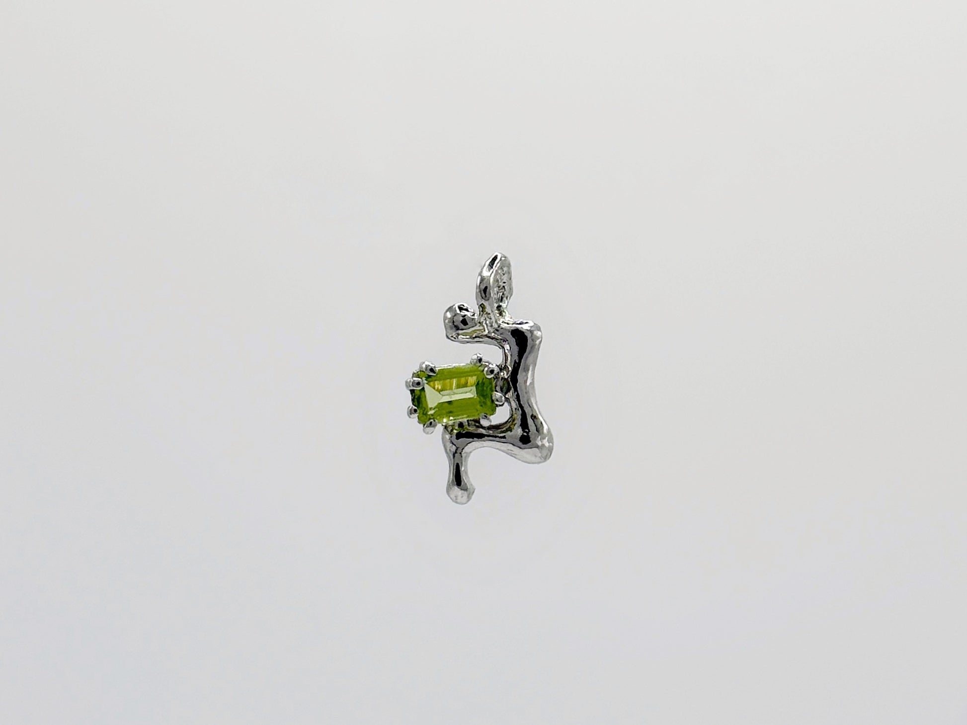 Ciondolo in Argento 925 rodiato realizzato a mano in Italia tramite la tecnica della fusione a cera persa, con peridoto taglio ottagonale.