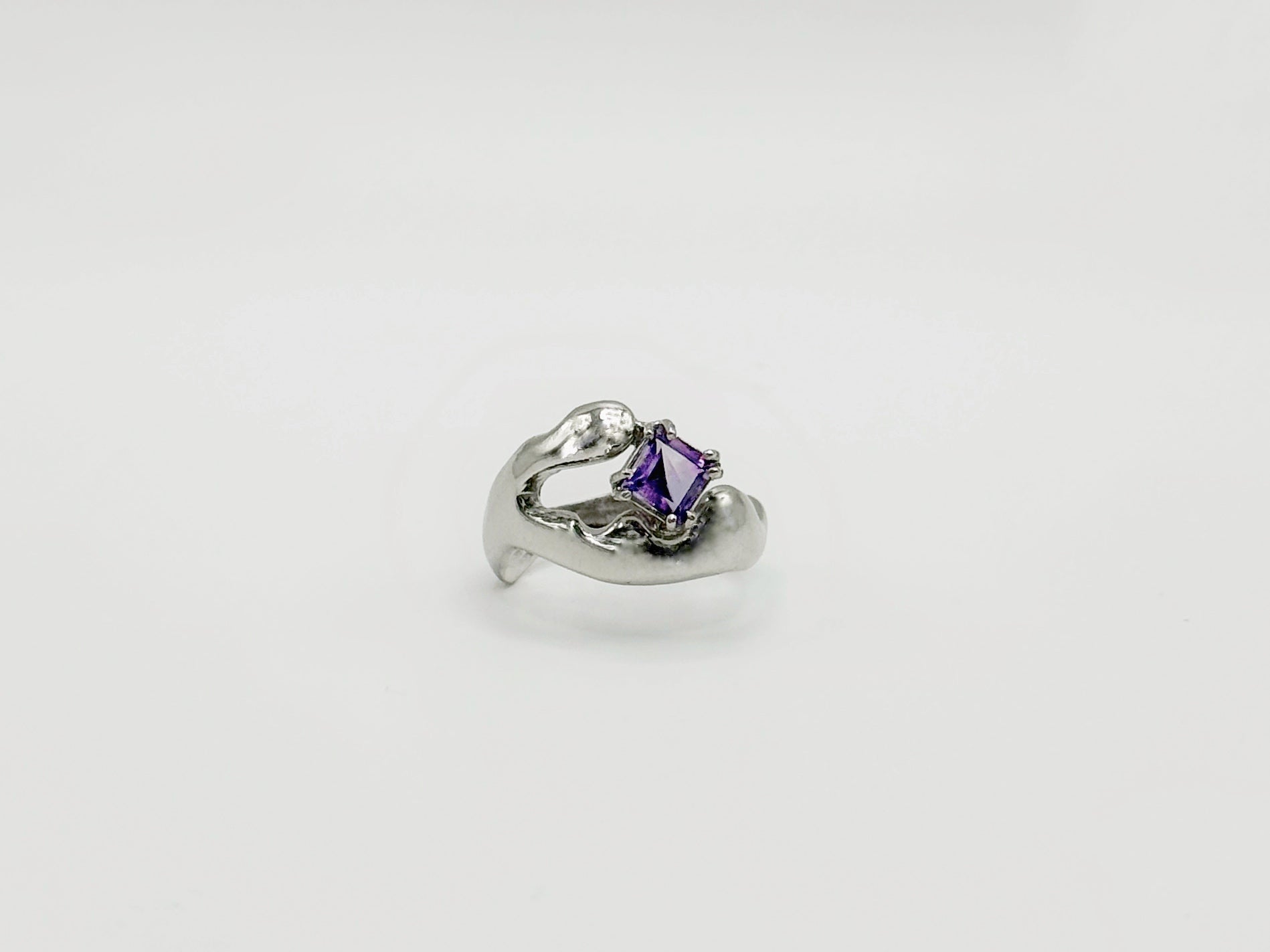 Anello in Argento 925 rodiato con ametista taglio carrè realizzato a mano in Italia tramite la tecnica della fusione a cera persa.