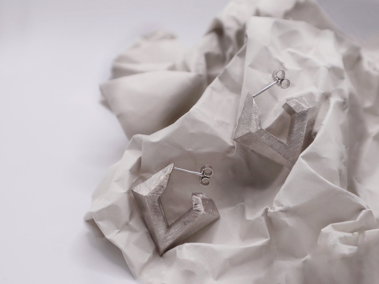 Orecchini in Argento 925 rodiato, realizzati a mano in Italia tramite la tecnica della fusione a cera persa. Questi orecchini a forma di rombo hanno una particolare lavorazione, infatti non presentano la classica finitura liscia, ma graffiata, che dona loro una lucentezza particolare. GLI ORECCHINI SONO VENDUTI IN COPPIA.